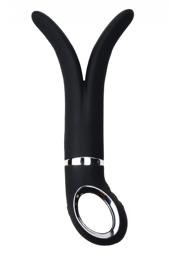 Włóż jeden koniec wibratora do pochwy, drugi umieść w anusie. Po włączeniu wibracji masażer będzie jednocześnie stymulował punkt G i odbyt, gwarantując przyjemność.