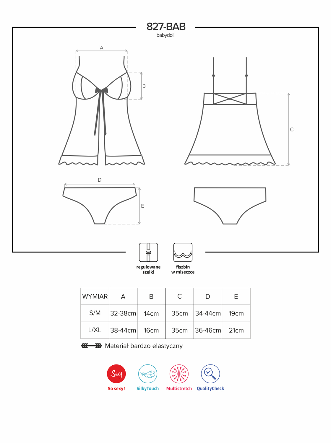 - regulowane szelki - miseczki usztywniane fiszbinem