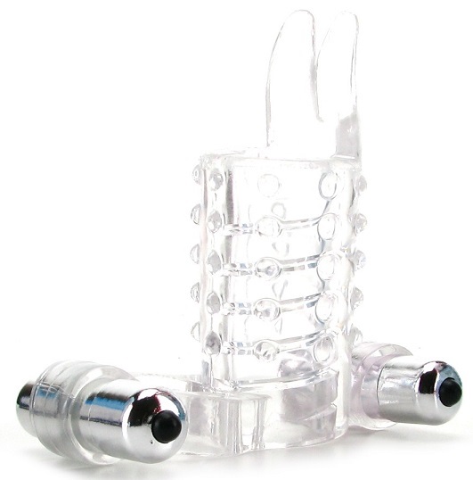 Naprawdę ekscytująca nakładka połączona z masażerem. Dzięki podwójnemu mechanizmowi wibrującemu (dwa oddzielnie zamontowane, na dwóch końcach nakładki) pozwoli na optymalne wypieszczenie zarówno partnera jak i partnerki. "Rękaw" idealnie dopasuje się do każdego rozmiaru członka dzięki temu, że wykonany jest z bardzo elastycznego i wytrzymałego materiału. Po zaciągnięciu materiał wraca do poprzedniego rozmiaru. Pozwala to na cieszenie się nakładką przez długi czas. Nakładka wyposażona jest w mnóstwo wypustek dodatkowo stymulujących pochwę. Dzięki zakończeniu w formie "króliczych uszek" dodatkowo staje się stymulatorem łechtaczki. Idealny gadżet dla par! Dzięki pierścieniowi zamieszczonemu na końcu nakładki staje się idealnym potrzymywaczem erekcji. Generalnie idealne połączenie wszystkich możliwych udogodnień w jednej nakładce!