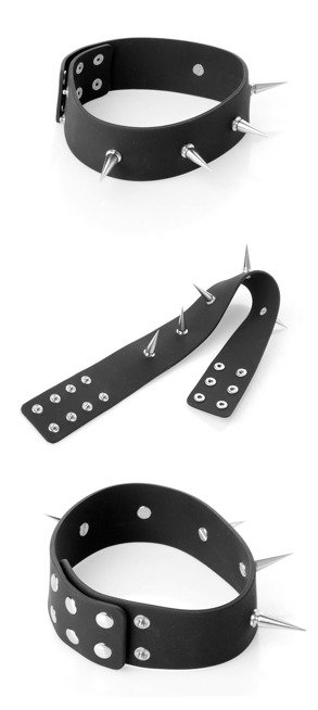 Silikonowa obroża z metalowymi kolcami. Możliwość regulacji obwodu.