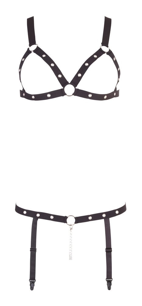 Z ozdobnymi oczkami i czterema paskami do pończoch.